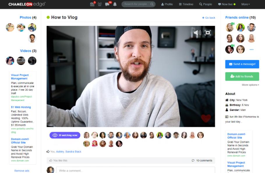 Each member feels unique so we developed a special means of underlining the uniqueness, the Smart Profile. Here the user can draw, publish videos and music, change background colors, etc.